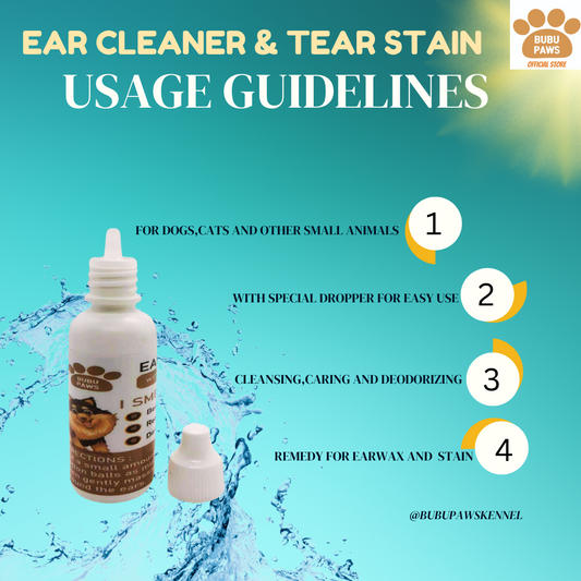 BUBU PAWS EAR CLEANER – FOR EAR MITES, EAR WAX, ANTI-BACTERIA, REMOVES ITCHY TEAR STAIN